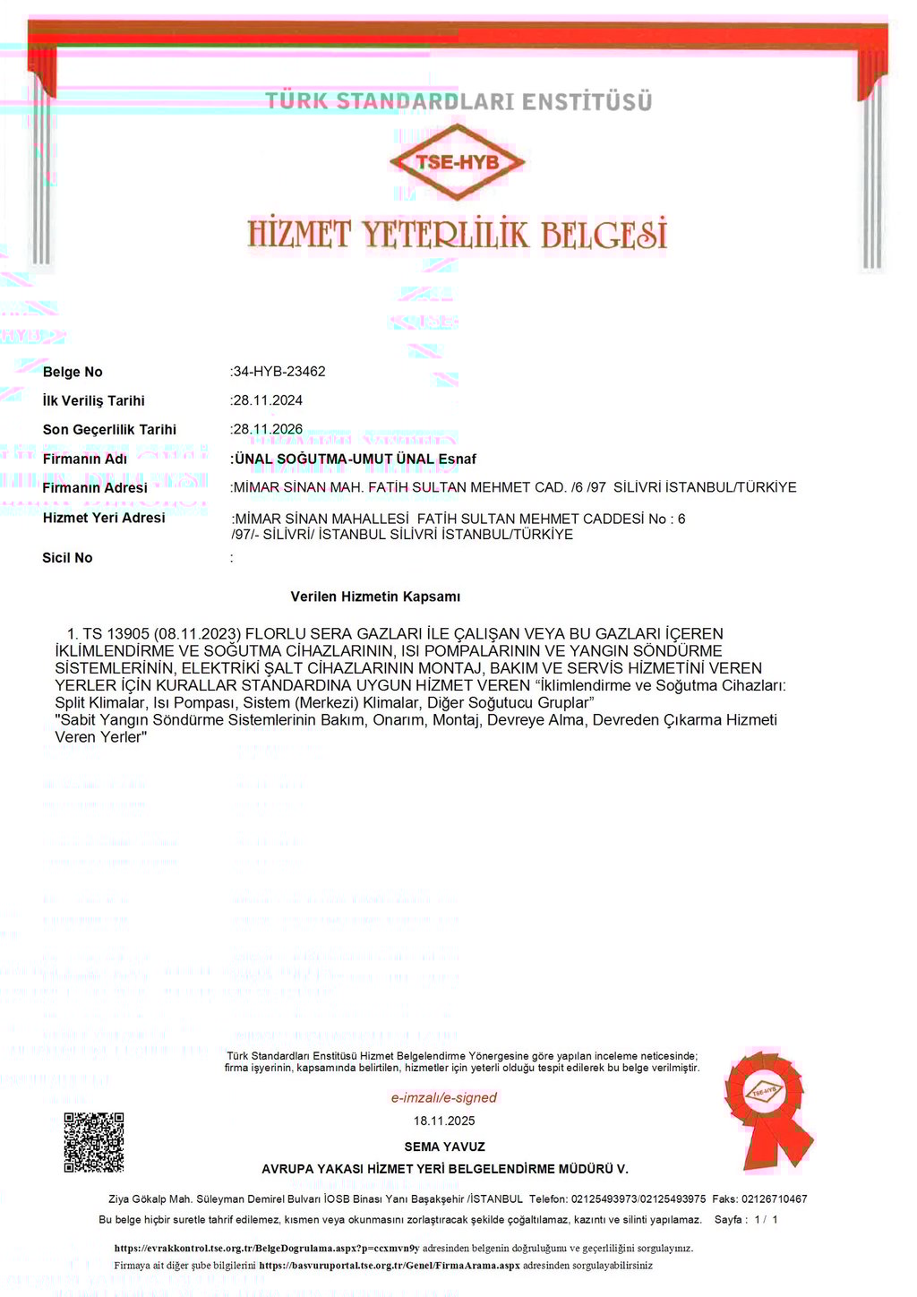Mimar Sinan Mahallesi, Fatih Sultan Mehmet Caddesi No:6/97Silivri/İSTANBUL